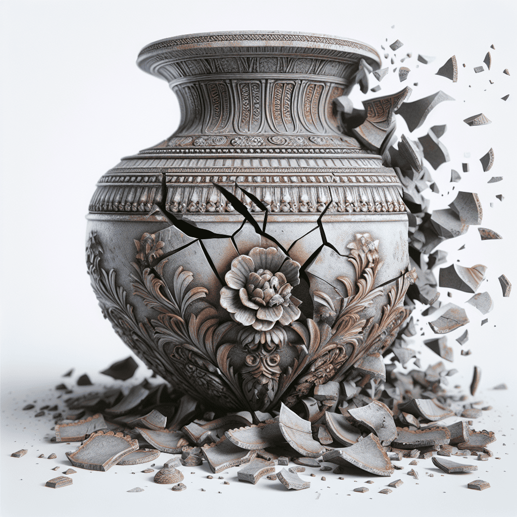 a shattered antique vase lying in pieces on the ground, representing a sense of worthlessness