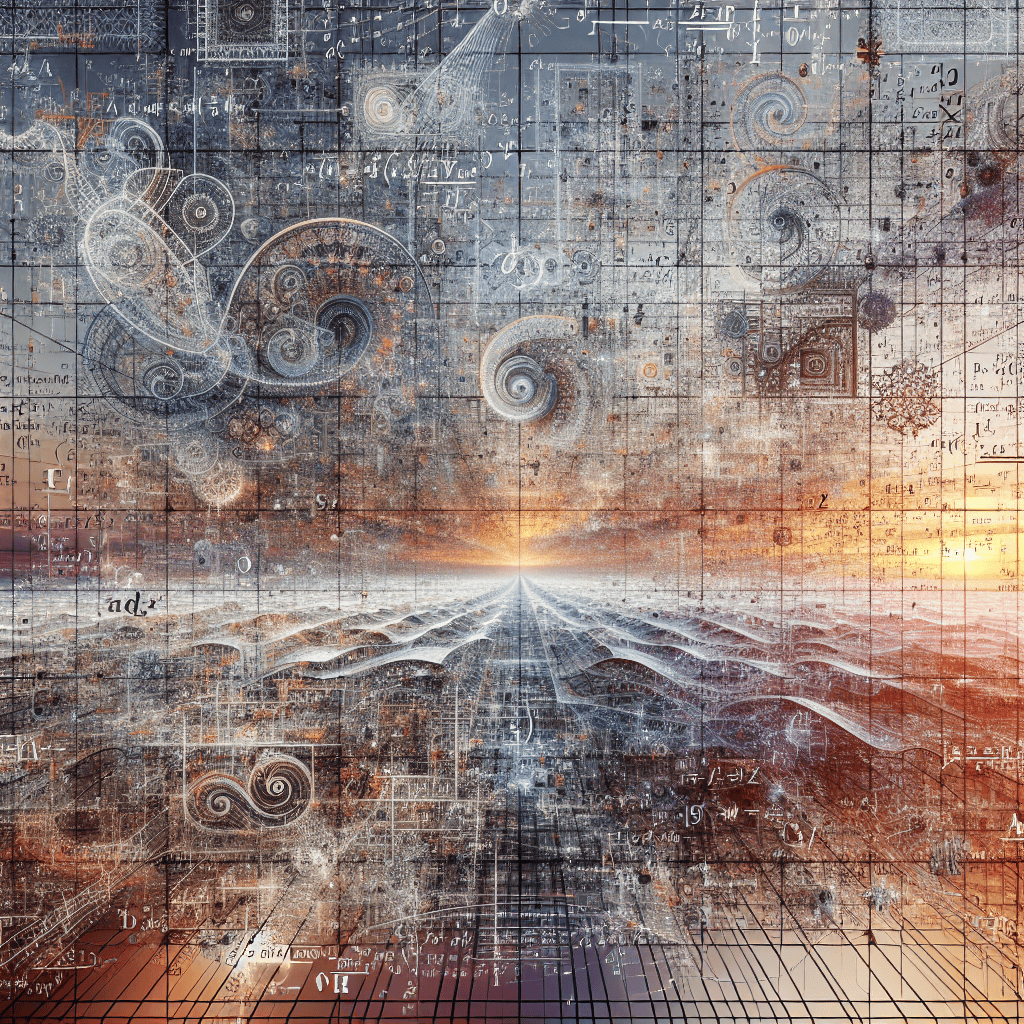 a collage of intricate patterns and complex mathematical equations that fade into an endless horizon, symbolizing the difficulty in grasping certain complex concepts