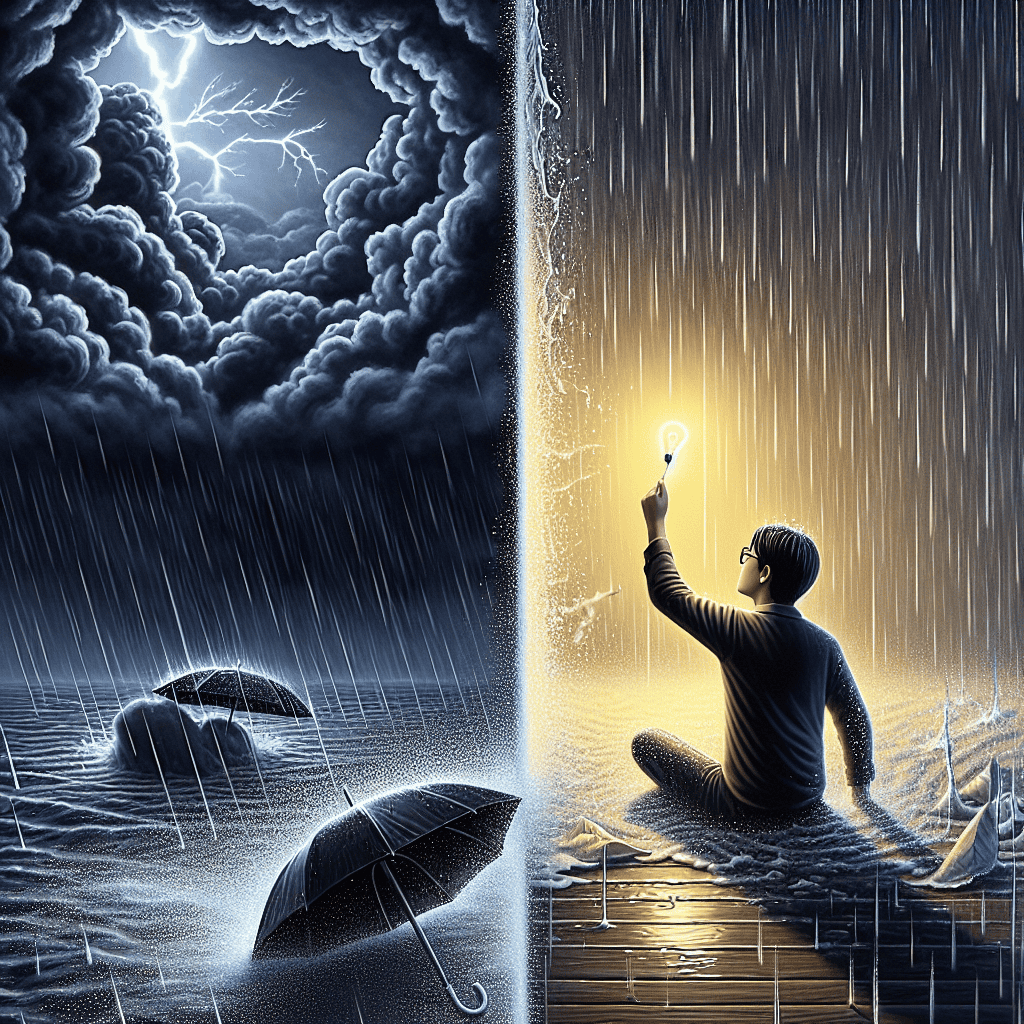 dual ideas of ‘raining’ and ‘forgetting an umbrella’ as the observable symbolization of linking independent clauses using semicolons without coordinating conjunctions