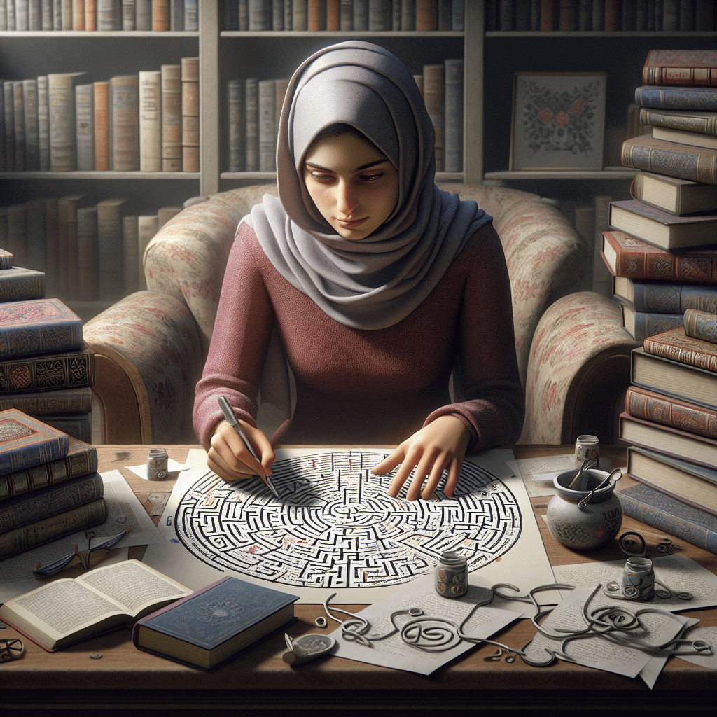 a person connecting dots on a piece of paper, contemplating a map of interconnected ideas—as if exploring multiple interpretations and meanings