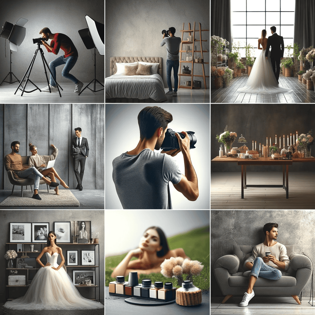 - The professional photographer was hired for a wedding photo shoot, taking pictures of the couple and their guests throughout the day.