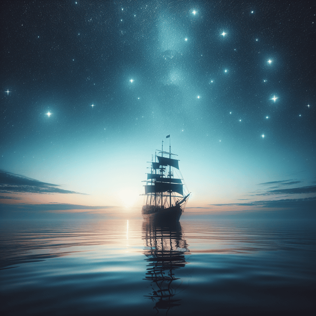 For example: "Under the stars and over the calm sea, the ship sailed gracefully; it was a serene night, perfect for a voyage."